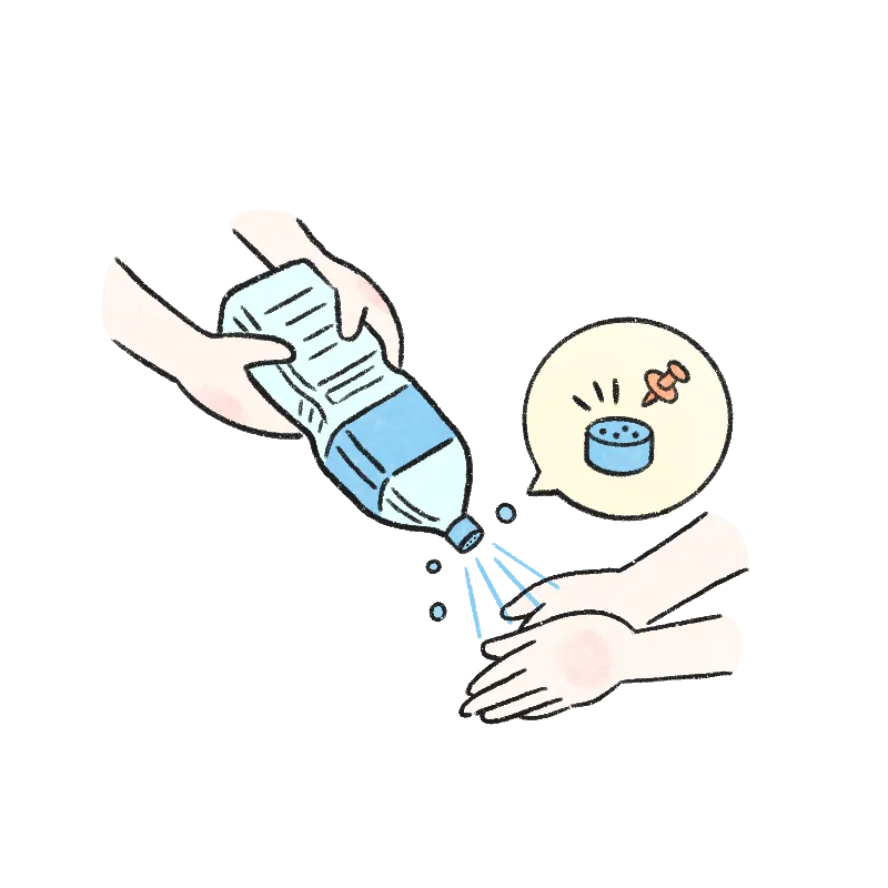 画びょうなどでキャップに穴を空けると、簡単シャワーになります。