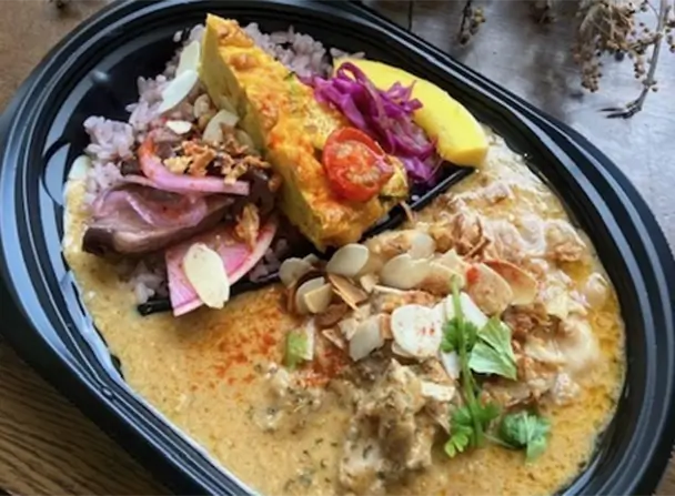 食材を無駄なく活用し食品ロスに配慮した「カオマンガイ」などを提供する他、野菜摂取量の測定(皮膚カロテノイド測定)及び毛細血管チェックも無料でできます。