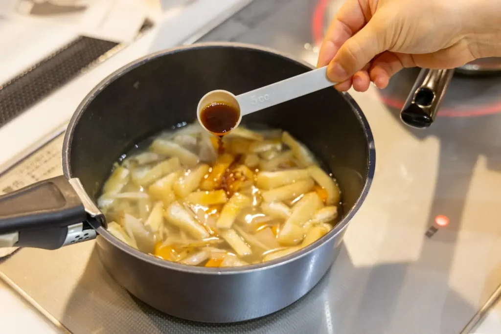 ②沸騰したら調味料を加える