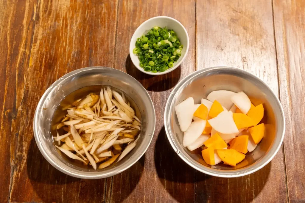 ごんぼ汁の「ごんぼ」は大阪弁で、ごぼうのこと。