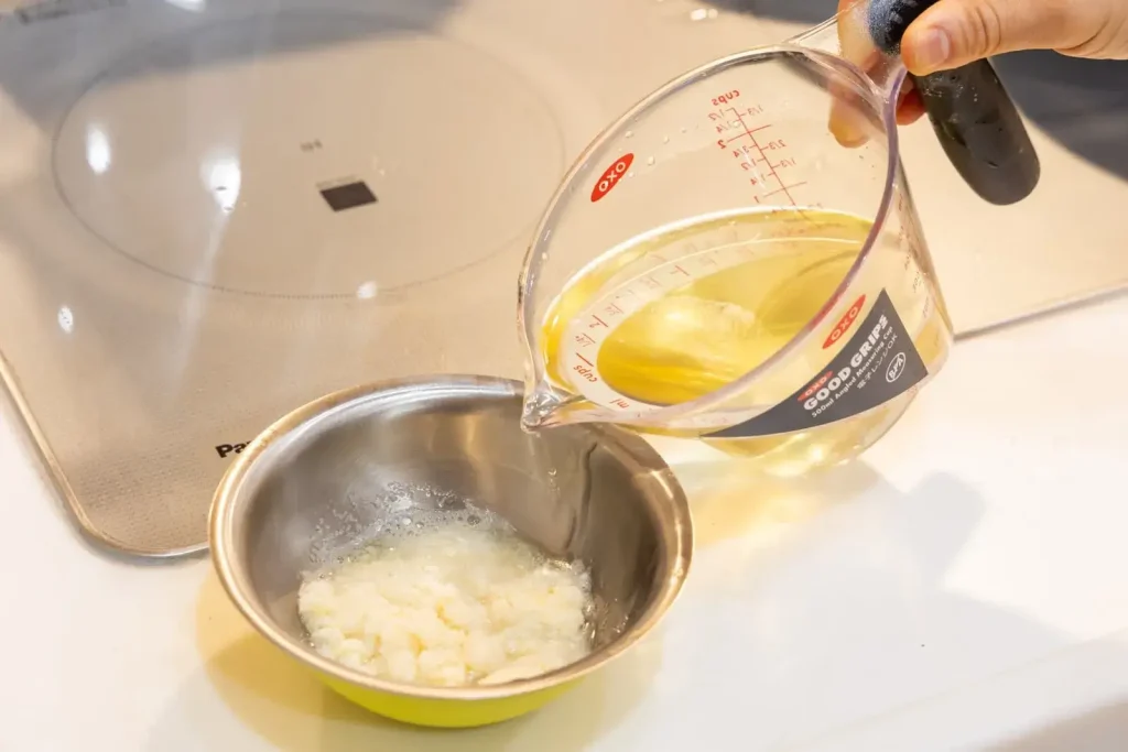 別の器でおからを少量のだし汁で溶いておきます。