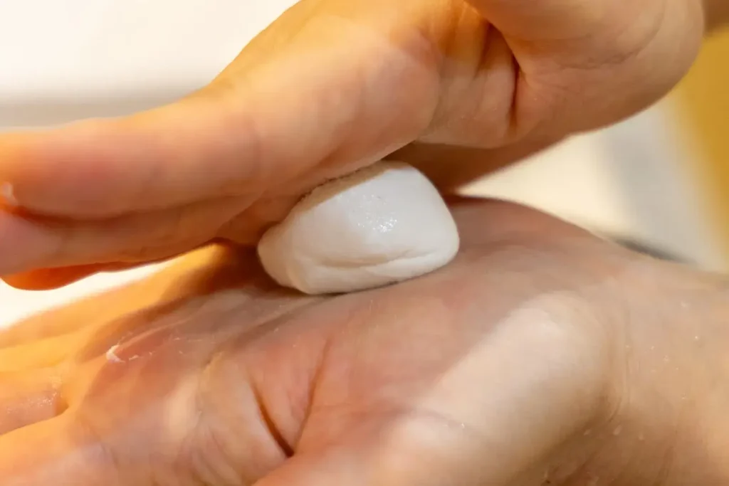 白玉を手で丸める作業が楽しいよ!